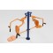 Fabricado com tubos de aço carbono de no mínimo 3 ½" x 3 mm. 2” x 2 mm. 1" ½ x 2 mm. Tubo de aço carbono trefilado 1”1/4’ x 3,56 mm schedule 40 (42,3 x 35,18 mm). chapas de aço carbono de no mínimo 4,75 mm. 3 mm. assentos e encostos fabricados em chapa de aço carbono de no mínimo 330 x 360 x 2 mm estampado, com cantos arredondados. Utiliza eixos maciços, com rolamentos duplos, pintura a pó eletrostática poliéster, batentes de borracha, tampas em metal externas, solda mig, acabamento emborrachado. Permite a utilização de 2 (dois) usuários simultâneos e oferece total segurança. Instalação em áreas fechadas ou ao ar livre, resistente às ações climáticas. Fixação do aparelho ao solo através de chumbador parabolt ou chumbador com flange. Adesivo de identificação do produto, músculos exercitados e dicas para uso e funções do aparelho, dados do fabricante e contato para assistência técnica.