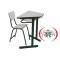 Carteira confeccionada em metalão 20 x 40 feito na chapa de 1,20, com grade em tubo ½ chapa 1,20 e ferro redondo 3/16, pintura eletrostática a pó epóxi em forno de alta temperatura. Tampo em MDF de 18mm, medindo 39,5cm x 60cm, em formato de trapézio, bordas envernizadas. Cadeira tubo 7/8 feito na chapa de 1,20, assento medindo 38cm largura x 34cm comprimento, encosto anatômicos medindo 38cm de largura x 19cm de comprimento, revestidos em fórmica. Altura do encosto 75 cm x altura do assento 43 cm.