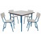 1 Mesa confeccionada em metalão 20 x 30, feito na chapa de 1,20, pés tubo de 1 ¼, feito na chapa de 1,20. Tratamento antiferruginoso, pintura eletrostática a pó épox, em forno de alta temperatura. Tampo em MDF de 18 mm, medindo 80cm x 80cm com bordas envernizadas, altura da mesa 60 cm. Com 04 Cadeirinhas confeccionadas em tubo ¾, feito na chapa de 1,20. Cadeira confeccionada em tubo ¾ chapa 1,20, assento medindo 26cm x 30cm e encosto medindo 15cm x 30cm, reto em MDF 18 mm, altura do encosto 63 cm, altura do assento 36 cm, bordas com acabamento em seladora.